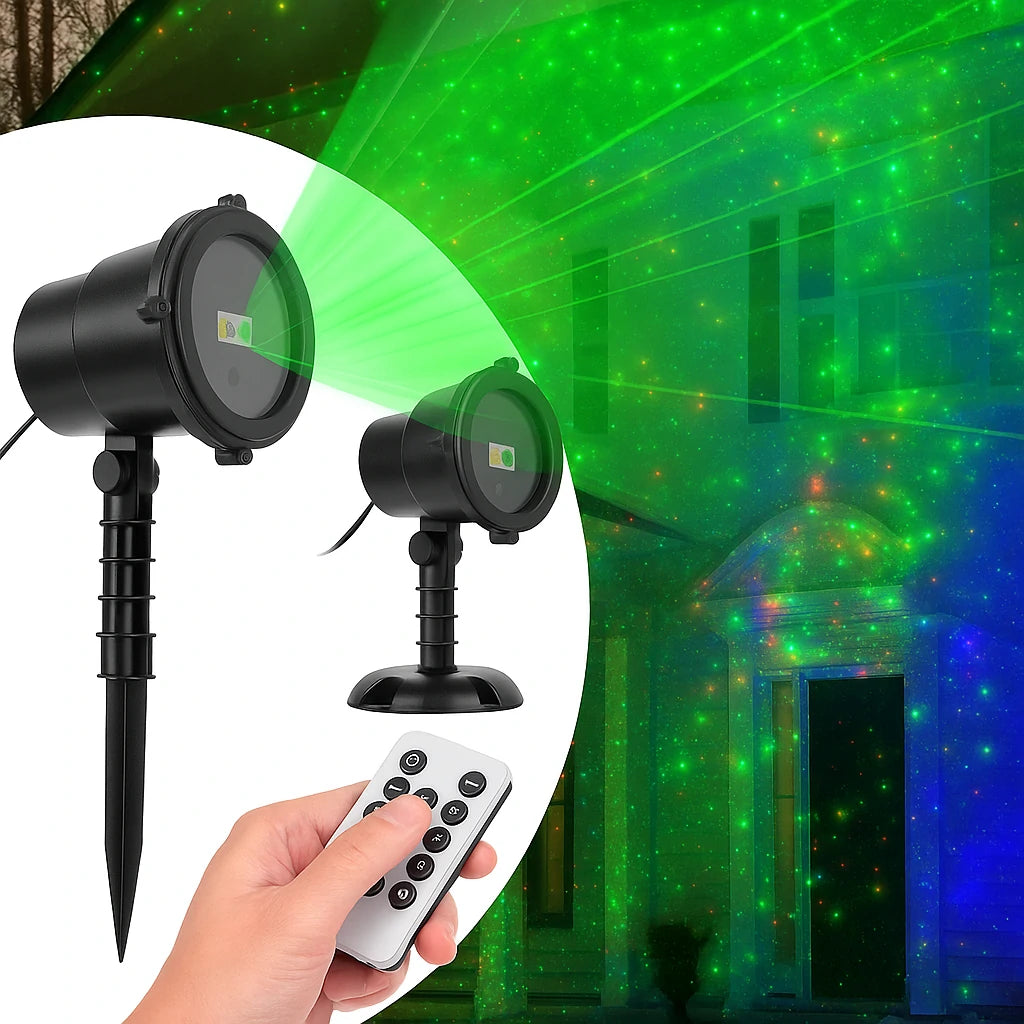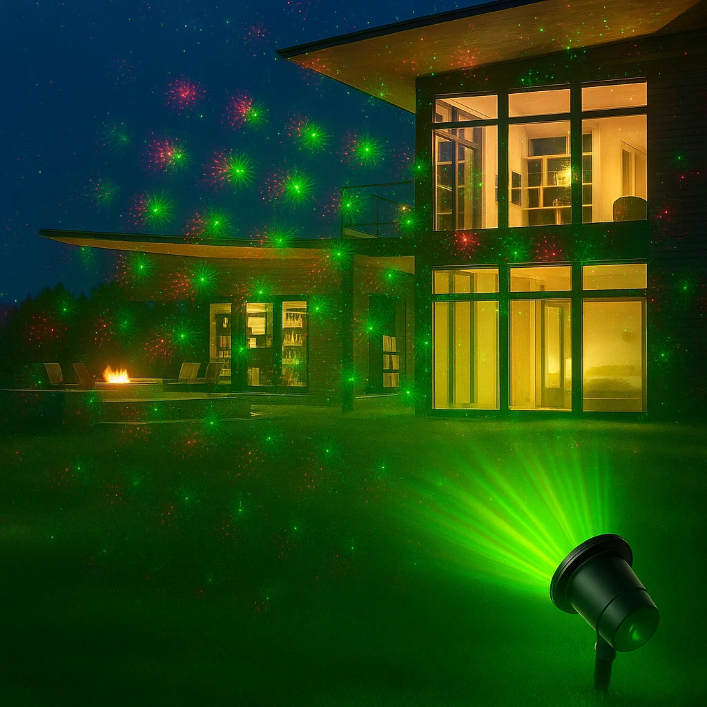 El Proyector Luz  Navideña cubre hasta 300 metros cuadrados con luces brillantes en rojo y verde, creando una verdadera galaxia de estrellas que transforma por completo tu casa.