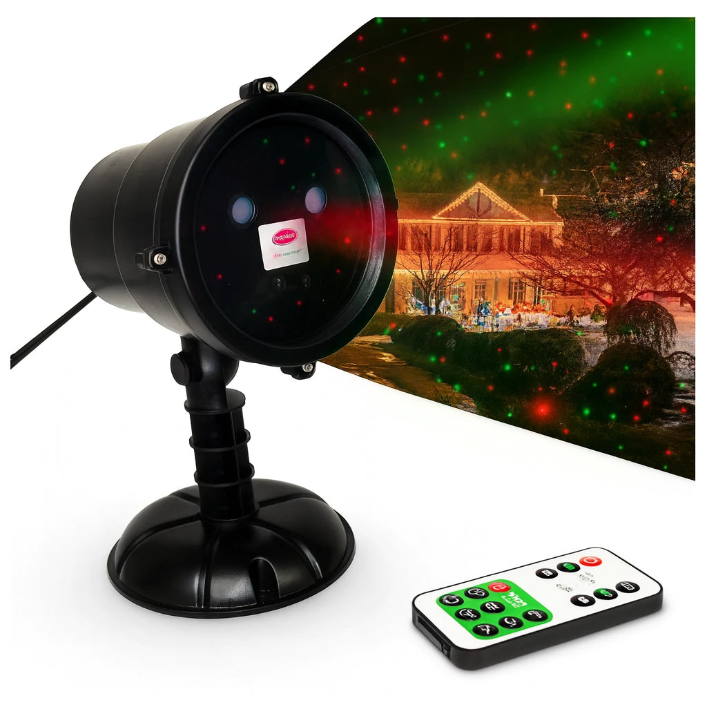 El Proyector Luz  Navideña viene equipado con diferentes opciones de movimiento y 3 modos de luz, que proyectan estrellas en colores rojo y verde en toda tu casa.